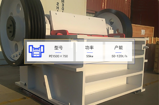 PEY500×750液壓颚式破碎機進料口尺寸是500×750mm,其進料粒度要小於(yú)425mm,破碎後的出料規格在35-100mm左右,使用的電機功率是55kw,每小時的處(chù)理量可達50-120噸。