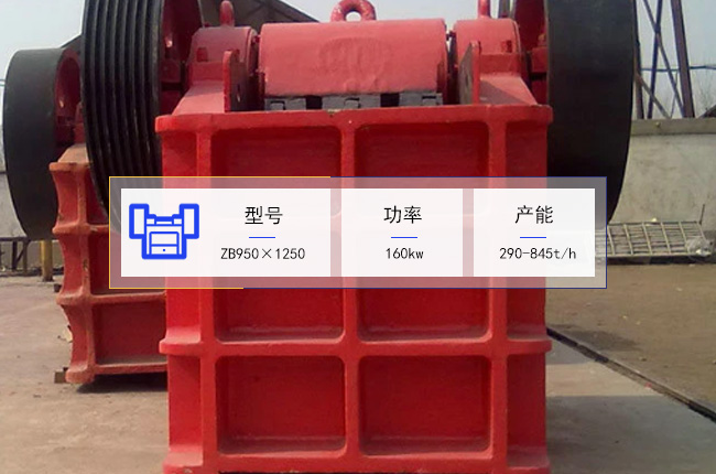 | 産品類型 | 颚式破碎機 | 設備型号 | ZB950×1250 | 進料口尺寸 | 950×1200mm |