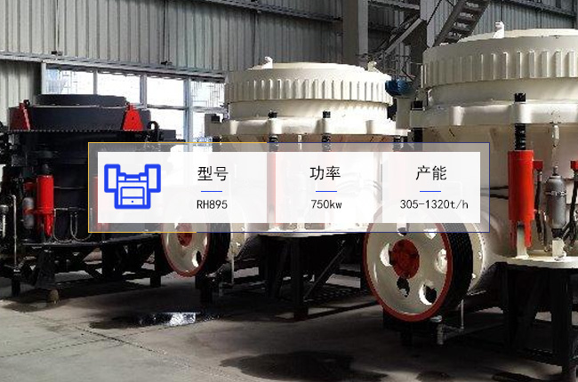 RH895圓錐破碎機是大産能石料中細碎設備,有多種破碎腔,進料要小於(yú)112mm,出料規格粒形在10-70mm之間,採(cǎi)用的電機功率是750kw,生産能力是時産305-1320噸,設備自重爲81噸。
