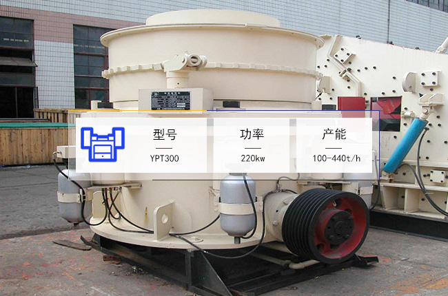 YPT300多缸液壓圓錐破碎機是小産能中細碎設備,進料粒度小於(yú)230mm,中細碎後的出料規格在10-25mm左右,可採(cǎi)用的電機功率爲220kw,每小時的産能是100-440噸,外形尺寸是2726×1950×2182mm。