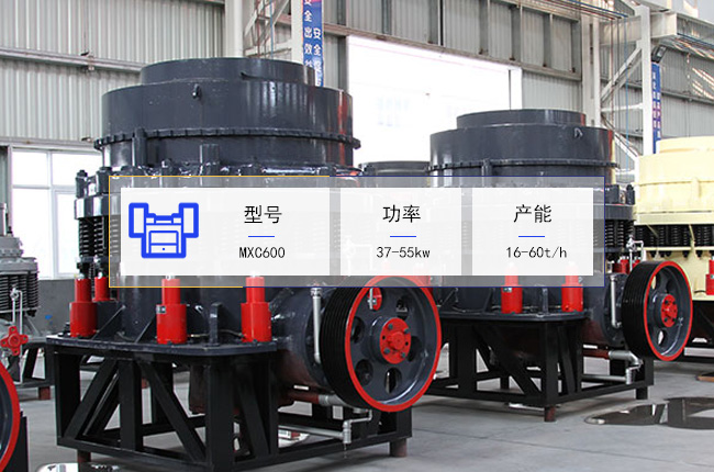 MXC600圓錐破碎機是台小産能破碎設備(bèi),能夠将進料粒度小於(yú)95mm的礦石破碎成6-38mm的沙石骨料,配置的電機功率爲37-55kw,一小時的産能是16-60噸,整機自重是5.3噸。