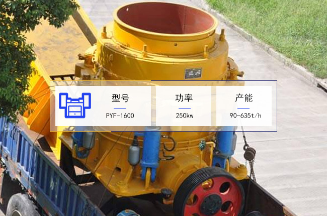 PYF-1600複合圓錐破碎機是台中型破碎加工設備(bèi),其進料粒度要不大於(yú)313mm,加工後的出料粒形在5-64mm之間,要應用的電機功率爲250kw,每小時處理量爲90-635噸,整機的重量是37.1噸。
