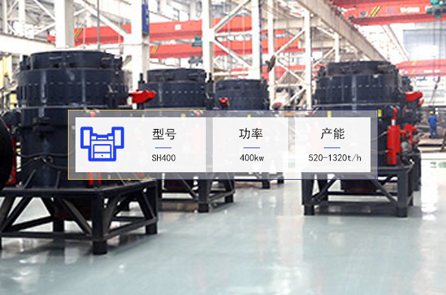 SH400圓錐破碎機是台大産能細碎加工設備(bèi),可破碎粒度不大於(yú)390mm的礦石,破碎後的出料規格在25-74mm左右,要使用的電機功率是400kw,一個小時的産能是520-1320噸,設備(bèi)的重量可達90噸。